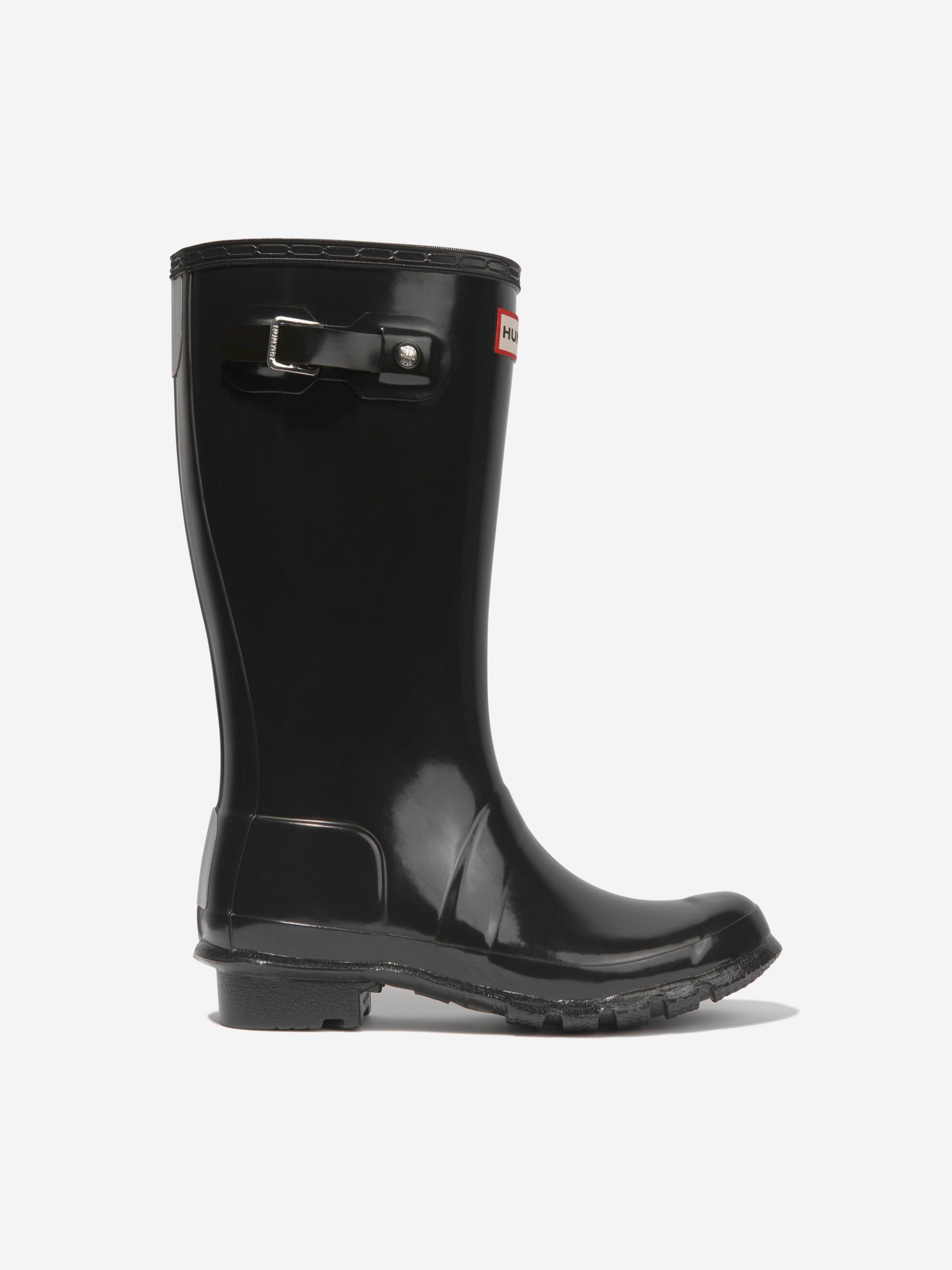 •Upgrade their footwear collection today with these Kids Original Gloss Wellington Boots in Black from Hunter. Purchase now to let your child step out in style!